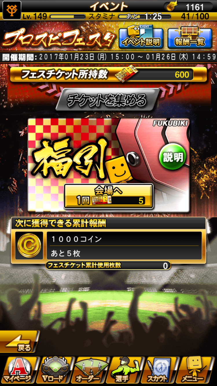 今回はプロスピフェスタの